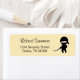 Lycklig tecknad ninja klädd i svart med arm upphöjt i väv. Traditionellt japanskt svärd katana kan ses fäst på axeln.