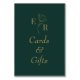Denna eleganta bordsskylt för kort och presenter har en djup smaragdgrön bakgrund med förfinad typografi i guldstil. Perfekt för moderna, klassiska eller minimalistiska bröllop som söker en polerad och lyxig look. Den rika juveltonen följer 2025–2026 års trender som gynnar djupgröna färger och tidlös elegans. Perfekt för välkomstbord, gåvområden eller mottagningsdekoration. Anpassningsbar text låter dig anpassa den till din bröllopsstil utan ansträngning.