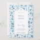 Inbjudningskort för möhippan med litet blåa blommor-blommönster. Blommor och löv i abstrakt hand plockade på vit bakgrund. Festive Ornate blommigt-bakgrund. Abstraktens blommigt med blommigt grenar. Vintage, söt goldleaf blommigt twigs, elegant blommor, vår eller sommardesign, romantisk bukett. Botaniskt område. Guldfolie Cute Blommor botany Inbjudningskort för möhippan. Small Flowers Collection.