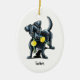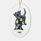 Add a pet name to personalize. Caricature of a black Jack Russell/Basset Hound mix, inspired by a dog named "Tucker" who is described as loving and enjoys playing with his ball toys. Ink & pencil drawing by Andie.