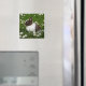 En enkel, söt, ensam kanin som kissar på några färska gröntar, omgiven av söta vita daisy blommor.