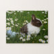 Small Brown and White Bunny i Flowers Pussel