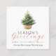 Festive watercolor Christmas tree with modern and script typography in red and black, business name overlaying white card. Add custom appreciation and year in the other side overlaying pine green.