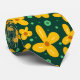 Sömlöst blommönster med litet gula blommor och turkospunter på mörk grönt bakgrund.