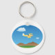 En liten gult flygplan flyger över ett landskap. Den här designen ser ut att vara effektiv i den här nyckelkedjan