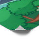 En tecknad Wukong med ett gyllene krona, som sjöng genom himmel på ett moln och som har en lång personal bakom ryggen. Bakgrunden visar ett serenlandskap med berg av grönt och blå himmel som på ett bra sätt står i kontrast till apans orange.
