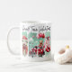 Warm, nostalgic mornings wrapped in small-town charm. This ceramic accent mug brings together vintage roadside romance—a red pickup piled with balloons, a bow-tied teddy, and cozy heart-patterned boots—set against soft mint brushstrokes and hand-lettered