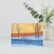 Smälter Snö - vykort för konst med en färgstark vintersolnedgång i orange från en akrylmålning av M Rogers.