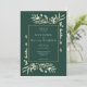 Med känsliga akvarell gröna blad och en förgylld ram på en smaragdgrön bakgrund, kan denna eleganta botaniska bröllopsinbjudan anpassas med ditt foto och speciell information om bröllopsdagen. Designad av Thisisnotme©