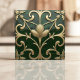 Ge elegans och sofistikering till ditt utrymme med denna djupa smaragd- och guld Art Nouveau-inspirerade design. Med flödande organiska blom- och vinrankemönster, intrikata metalliska accenter och stiliserade botaniska kurvor, utstrålar detta stycke vintage charm. De något upphöjda präglade elementen och virvlande detaljerna skapar en tidlös och lyxig estetik, perfekt för backsplash, accentväggar eller raffinerad inredning.
