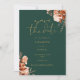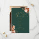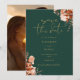 Denna eleganta höstliga rusticerade blommiga spara datum-inbjudan kan anpassas med din information i chic guldtypografi på en smaragdgrön bakgrund och foto på baksidan. Designad av Thisisnotme
