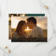 Detta eleganta hjärtformade guldscript-foto 'spara datum'-kort har ditt foto och en vacker text ovanför era namn, datum och adress. Baksidan har ett extra foto, meddelande och bröllopswebbplatsens QR-kod på en smaragdgrön bakgrund. Designad av Thisisnotme
