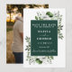Det här moderna och eleganta akvarell-smaragdgröna blommande bröllopskortet för "spara datum" kan anpassas med din information i chic typografi och ett speciellt foto på baksidan. Designad av Thisisnotme©