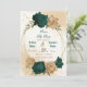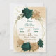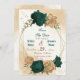Vacker bröllops inbjudan med smaragdgröna och beige-guldfärgade blommor med gröna blad .