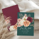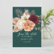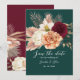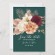 Meddela din speciella dag med detta boho-rustika save the date-kort med eleganta akvarellblommor i burgunderrött, elfenben och persika på djup smaragdgrön. Perfekt för höstbröllop och blomster teman. Anpassa med dina namn och datum. Behöver du hjälp? Kontakta mig: bpkolman@gmail.com