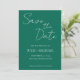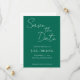 Enkla bröllopsinbjudningar med white, stiliserad text på en trendig, smaragdgrön bakgrund. Redigera och ersätt namn, datum och plats med dina egna. Välj din inbjudans storlek och papperstil.