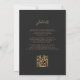 Den vänstra kanten på denna eleganta moderna bröllopsinbjudan har en smaragdgrön akvatintakvartsgräns med falskt guldglitter. Den anpassningsbara texten kombinerar guldfärgad script och sans serif-teckensnitt på en skiffer svart bakgrund. Baksidan ger utrymme för bröllopsdetaljer på en solid skiffer svart bakgrund, tillsammans med en QR-kod som gästerna kan skanna för att besöka din webbplats och svara, vilket sparar kostnaden för att skriva ut och skicka separata svars kort.