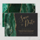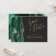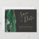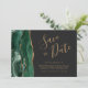 Detta eleganta moderna kort för att spara datumet har en smaragdgrön akvarell-agatgräns med falskt guldglitter. Den anpassningsbara texten kombinerar guldfärgad handskriven stil, kopparplåt och kursiv stil på en mörk kolgrå bakgrund. Baksidan har en matchande smaragdgrön och guld-agat-design.
