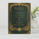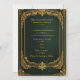 Fira i kunglig stil med denna smaragdgröna och gyllene bröllopsinbjudan. Med en utsmyckad vintage ram och elegant typografi är denna anpassningsbara design perfekt för lyxiga, formella och glamourösa bröllop.