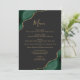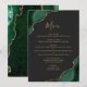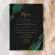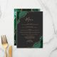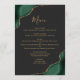 Denna eleganta moderna bröllopsmeny har smaragdgröna akvatellhörn av agat med falskt guldglitter. Den anpassningsbara texten kombinerar guldfärgad fantasifull handskrift och kopparstick-font på en skiffer svart bakgrund. Baksidan har en matchande smaragdgrön och guld agat-design.