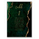 Smaragdgrön guldagate bröllop bordsnummer