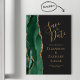 Detta eleganta moderna magnetkort för att spara datum har en smaragdgrön akvarell-agatgräns med falskt guldglitter. Anpassa enkelt den guldfärgade texten på en skiffer svart bakgrund.