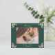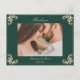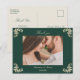 Uttryck tacksamhet i tidlös stil med detta smaragdgröna och gyllene barocka bröllop tack-kort. Med utsmyckade vintage detaljer, elegant typografi och utrymme för ert bröllopsfoto på framsidan skapas en meningsfull souvenir för era gäster. Postkortets baksidesdesign gör det enkelt att skicka samtidigt som den behåller en förfinad look. Perfekt för par som söker en lyxig smaragdgrön och guld bröllopspresentationsserie.