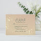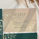 Elegant grön smaragd och guld RSVP-kort med diskreta blomaccent och modern text i skrivstil. Detta svars kort innehåller alternativ för måltidsval och medföljande gäster, vilket gör det till ett praktiskt och stilrent komplement till din bröllopps pappersvaror. Koordinerar perfekt med matchande "spara datum" och inbjudningsdesign för en sammanhållen look.