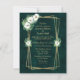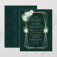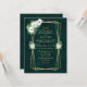 OBS: Detta är en vacker elegant bröllopsinbjudan med smaragdgrön pappersbakgrund, en geometrisk guldbård och tropiska blomaccent.