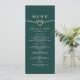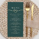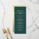 Smaragdgrön menykort för bröllopsmiddag meny