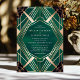 Sätt tonen för en glamourös fest med denna Art Deco bröllopsinbjudan, med ett slående geometriskt mönster i guld och svart på en rik smaragdgrön bakgrund. Den lyxiga designen och vintageelegansen gör den perfekt för ett sofistikerat bröllop med en touch av 1920-talsflair. Idealisk för par som uppskattar tidlös stil och klassisk skönhet, fångar denna inbjudan storheten från Art Deco-eran.