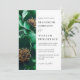 Denna eleganta smaragdgröna och gyllene blomsterbröllopsinbjudan kan anpassas med din information i modern typografi. Designad av Thisisnotme
