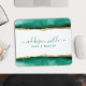 Smaragdgrön Och Guld Vattenfärg Musmatta. Elegant smaragdgrön och guld geometrisk handskriven stilkalligrafi professionell affärsdesign. Perfekt för sminkartister, frisörer, kosmetologer med mera!