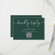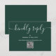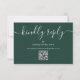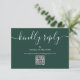 Ett enkelt, elegant signaturskript vänligt svar smaragdgrön RSVP-kort med QR-kod. Designad av Thisisnotme©
