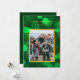 Det här julkortet har ditt foto och orden "God Jul" i falskt guldblad mot en bakgrund med smaragdgröna bokeh-ljus. Baksidan av kortet har en mörkgrön bakgrund.