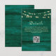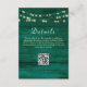 Lantlig, elegant, gyllene strängljus på rustik trä smaragdgrön bröllopsdetaljkort med QR-kod för mer information.