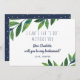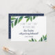 Vill du vara min brudtärna kort med handritade gröna kvistar fyllda med vattenfärgstruktur som omger din text i mörkblått med charmiga teckensnitt, och små vita konfetti på baksidan.