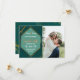 Elegant, chic och modern, falskt tryckt guldmarmor och geometrisk diamantformkontur på mint- och skogsgrön diamantutskärning, Spara-datum bröllopskort. Denna klassiska och sofistikerade design är perfekt för det trendiga och stiliga brudparet. Personalisera med ditt eget meddelande på framsidan samt en anpassad monograminitial på baksidan.