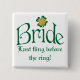 Denna skoggrönt- och vitbrud "sist häftig rörelse för ringen" knäppas har ett guld- FAUXglitter och en lycklig grön fyrklöver shamrock på den. Den skulle är perfekt för ett Bachelorette eller stagetteparty eller en höna nattparty. Om du behöver ändrande något, behaga e-posten niteowlstudio@gmail.com.