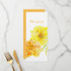 Dubbla-sidig, enkel modern stiliserad Fransk marigets stil lös blommigt-bröllopsmiddag på bröllopsmenyn för bröllopsdag. Sarah Trett målade på ett unikt sätt i vattenfärg och designat.