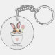 Cute smart bunny i en växthög med blomma och hjärta. Text kan vara personlig.
