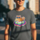 Resting on a colorful rainbow cloud, this clever kitty combines brainpower with style. It is the perfect accessory for students, designers, creatives, or anyone who loves funny cat memes and bright ideas. Show off your genius side with this unique art!"