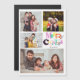 "God jul" typografiktext med ett fotokort för magnetisk anpassningsbar av färgad typsnitt. Det här magnetkortet har plats för fyra av dina favoritfoton i familjen för att göra julklappen klar och personlig.