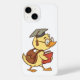 Lustigt och förtjusande tecknad anka student med studentmössa och glasögon medan man håller i bok. Perfekt av utbildningsvektorillustration för skolprojekt, läromedel för barn, lärarresurser, studenten-gåvor och akademiska teman.
