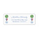 Returadressetikett design med boxwood topiary dekorerad med en röd vit och blå slinga. Element handmålade av mig i akvarell innan de skannades till digital form. För att matcha mitt Preppy Boxwood Topiary röda vita och blå sortiment brevpapper.