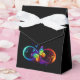 Smärtsam oändlighet med regnbågsfjäril på svart presentaskar