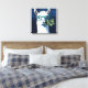 Playful twist to cute animal art and humor with a quirky white llama rocking teal glasses and holding a leafy branch.