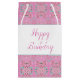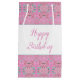 Anpassa grattis på födelsedagen-texten till ett särskilt tillfälle vid denna lilla pappra dekorativa designade presentsäck i rosa med dekorationsaccent. Text kan också tas bort om du vill, och rosans bakgrund kan växlas till vilket färg som helst för att komplimentera stil.