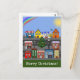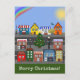 Ett färgstarkt och ljust litet stadsområde med ett traditionellt Julgran i mitten. Denna utformning har två huvudversioner, en som skildrar staden under dagsljus, inklusive regnbåge och sol och en annan i natt som skildrar en stjärnbild av himmel. God jul-typografi är anpassade så att du kan lägga till ditt eget budskap eller namn för att anpassa det.