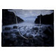 Småstarna och sten längs havets strand. Fotot gör använda av en lång exponering för en rökeffekt.